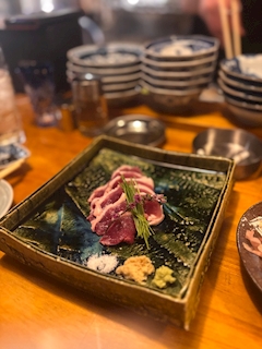 出勤してまーす͈ᴗ̀ ̫ᴗ́ ͈! 熊本で馬刺したべてきました😮🌟ありえんおいしかったiuiしあわせ 華金✨️のませてくださーい🍺